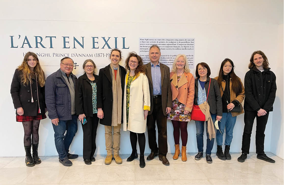 Tháng 3/2022 vừa rồi, ở Bảo tàng Nghệ thuật châu Á tại Nice (Pháp) diễn ra cuộc triển lãm “Nghệ thuật lưu đày” (ảnh trên) với hơn 150 tranh tượng, hiện vật lịch sử của vua Hàm Nghi. Cuộc triển lãm quý giá do công sức của TS. Amandine Dabat - cháu 5 đời của vua Hàm Nghi thực hiện. Trong buổi khai mạc, có đông đủ con cháu của vua Hàm Nghi ở các nơi đến dự.