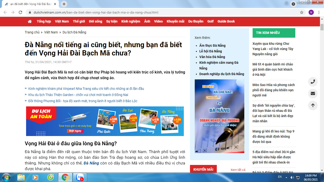 Thông tin sai lệch, bịa đặt cũng được diadiemdanang.vn-“Trang cung cấp thông tin du lịch hàng đầu Đà Nẵng’’ dẫn lại từ DLVN