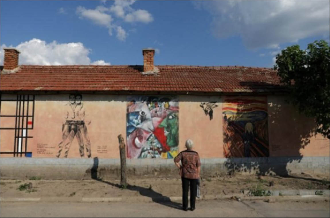 Chiêm ngưỡng các tác phẩm trên tường một ngôi nhà ở làng Staro Zhelezare, Bulgaria. Ảnh: Reuters