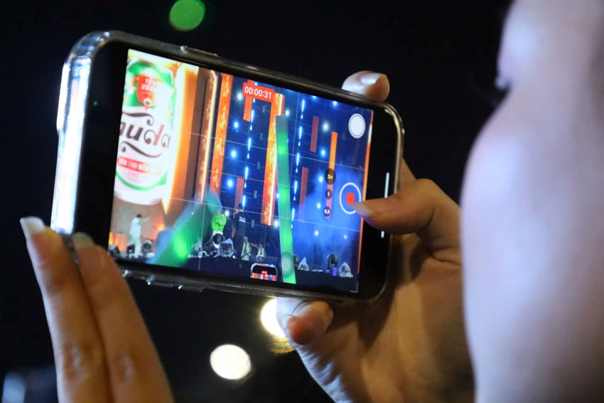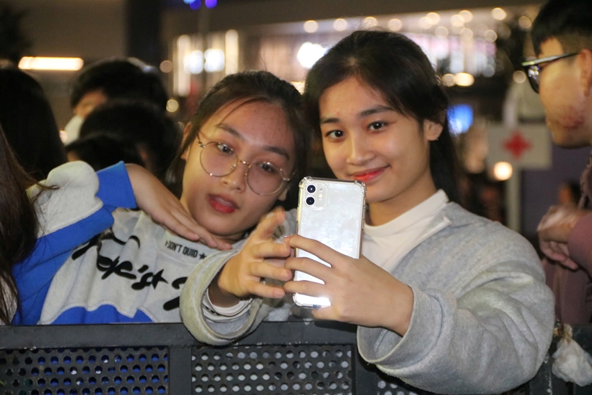 | Một bạn trẻ ghi lại khoảnh khắc trong đêm chào đón năm mới 2025. Ảnh: P.T |