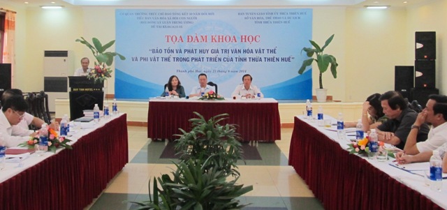 Phát biểu đề dẫn, GS.TS Phùng Hữu Phú, Phó Chủ tịch Thường trực Hội đồng Lý luận Trung ương, Chủ nhiệm Đề tài KX. 04.14.11-15 nhấn mạnh về vị thế, đặc sắc về văn hóa của một Huế kinh đô xưa và một Huế cố đô lịch sử, thành phố văn hóa của ASEAN hôm nay; đồng thời đưa ra một số vấn đề cần trao đổi thêm, như: Văn hoá đã “thấm” vào chính trị và kinh tế Thừa Thiên Huế như thế nào; Sắp tới, văn hoá có trở thành thế mạnh của địa phương không; Thừa Thiên Huế phải làm gì để quản lý văn hoá tốt hơn và để mối tương quan giữa văn hoá vật thể và văn hoá phi vật thể trở thành một thể thống nhất…