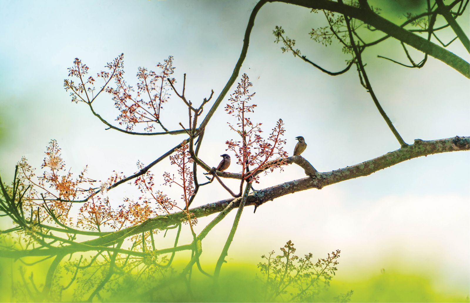 Màn sương giăng trên vòm cây và đễnh đãng trên lối. Nghe tiếng líu tíu của những chú sẻ nâu bé bỏng, cứ có cảm giác chúng đang dụi cổ, hít hà mùi ấm dưới cánh mẹ. Lá như những bàn tay nhỏ, che sương và che gió. Cành hồng Huế rung rinh mấy nụ ấm, dù chừng như lúc nào cũng khẳng khiu...