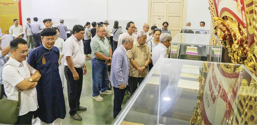 | Đại biểu, du khách tham quan triển lãm "Chuyện kể từ những trang cổ thư” |