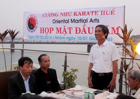 Võ sự Trương Trọng Toản (đứng) ôn lại kỷ niệm về tết Nguyên Tiêu trong ngày gặp mặt đầu năm