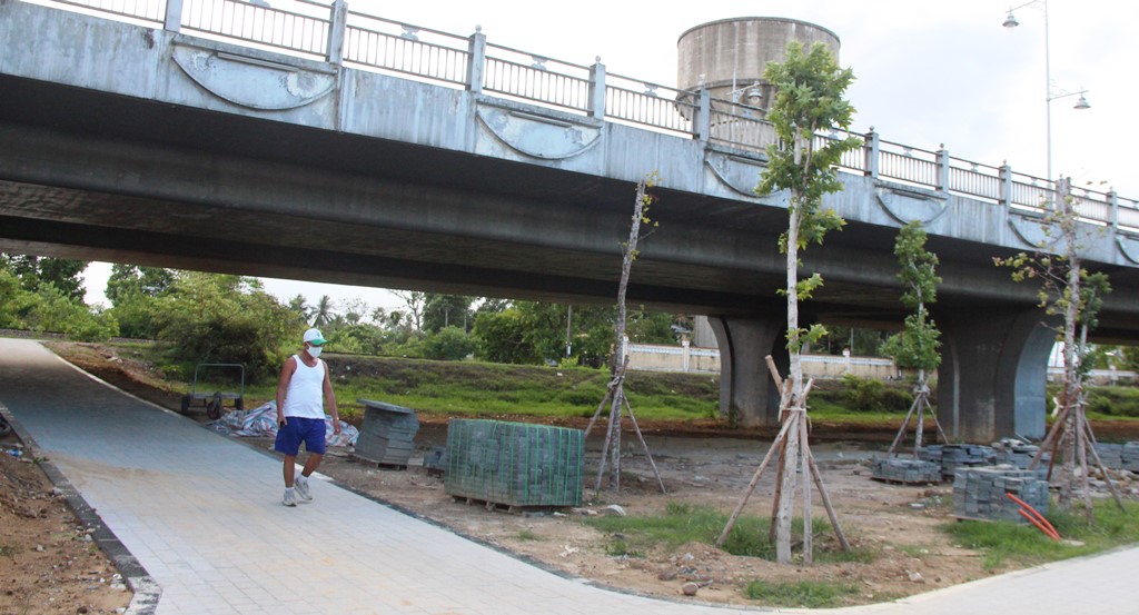 Cung đường ốp đá vòng quanh cồn Dã Viên dài khoảng 1.100m cơ bản hoàn tất