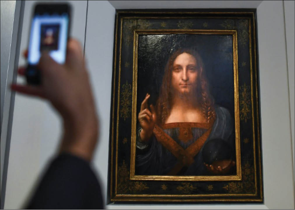 Tác phẩm Salvator Mundi của họa sĩ Leonardo da Vinci được trưng bày tại New York vào ngày 11/10/2017. Ảnh: AFP