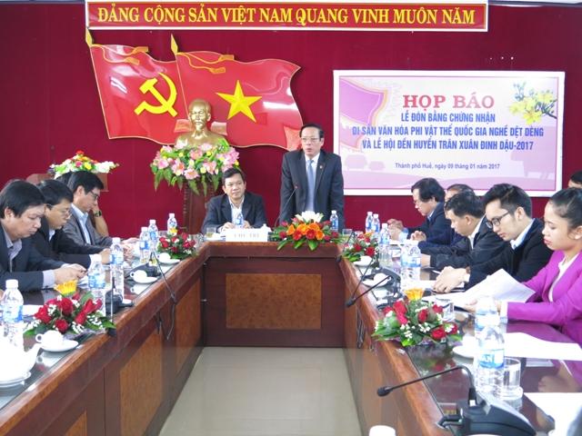 HNN.VN - Sáng 9/1, Sở Văn hóa và Thể thao tổ chức họp báo giới thiệu về lễ đón bằng chứng nhận di sản văn hóa phi vật thể quốc gia nghề dệt Dèng và lễ hội Đền Huyền Trân Xuân Đinh Dậu 2017.