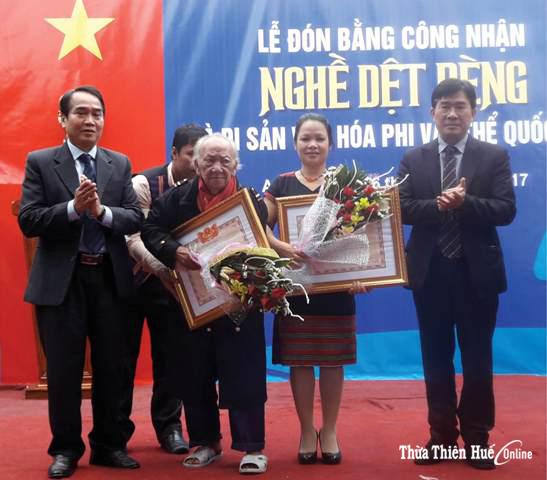 Sáng 16/1, tại Trung tâm Sinh hoạt văn hóa các dân tộc huyện A Lưới, Sở Văn hóa và Thể thao phối hợp với UBND huyện A Lưới tổ chức lễ đón Bằng công nhận nghề dệt zèng của đồng bào Tà Ôi là Di sản Văn hóa phi vật thể quốc gia. Các ông: Phan Văn Hùng, Thứ trưởng, Phó Chủ nhiệm Ủy ban Dân tộc; Nông Quốc Thành – Phó Cục trưởng Cục Di sản Văn hóa (Bộ Văn hóa, Thể thao và Du lịch); ông Bùi Thanh Hà, Phó Bí thư Thường trực Tỉnh ủy; Nguyễn Dung, TUV, Phó Chủ tịch UBND tỉnh đã đến dự.