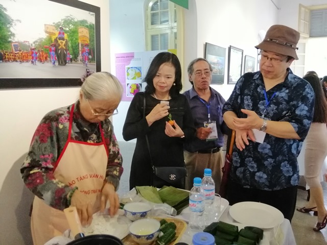Ở không gian trưng bày bánh Huế, đoàn đại biểu đã được trải nghiệm và tương tác với các loại bánh Huế khi xem các nghệ nhân thao diễn làm bánh ít, bánh in, bánh phu thê, bánh trái cây; thưởng thức các loại bánh Huế, thưởng trà, rượu truyền thống Huế.