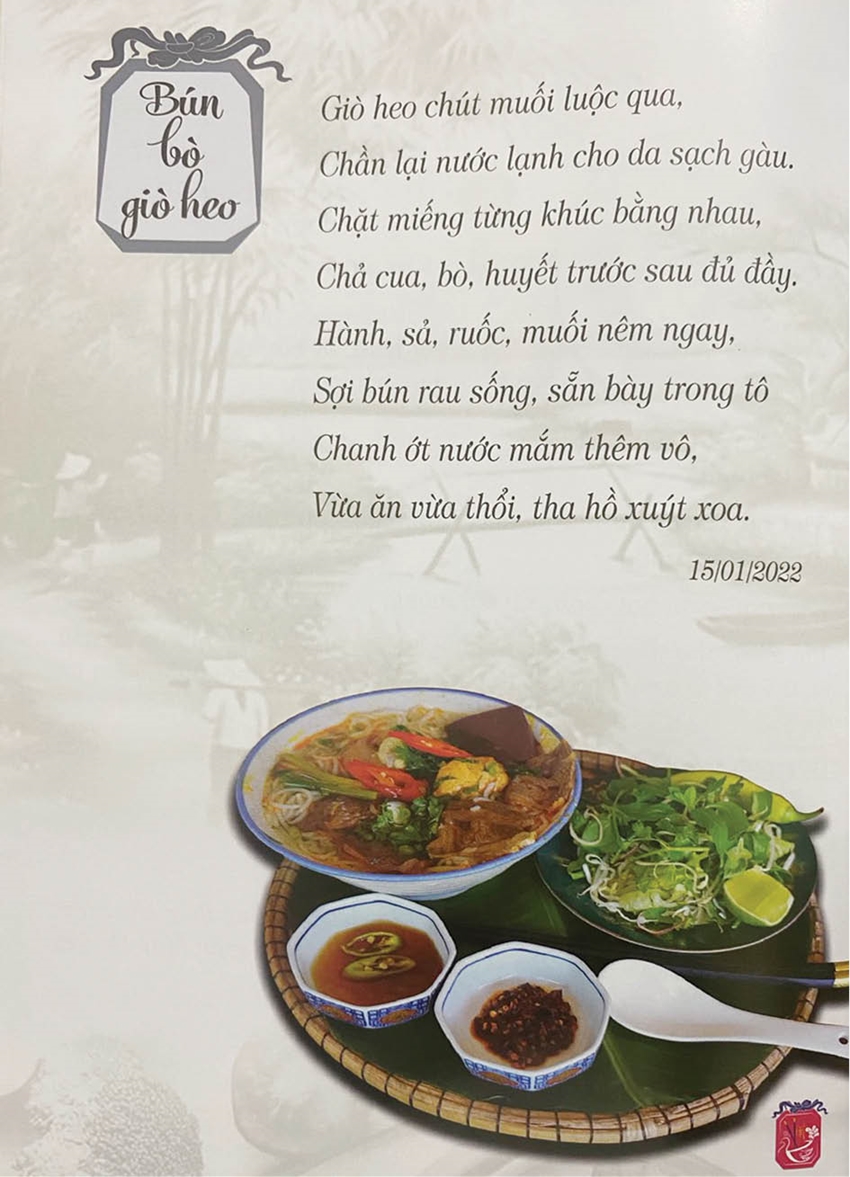 | Một trang thơ và ảnh giới thiệu món bún bò giò heo |