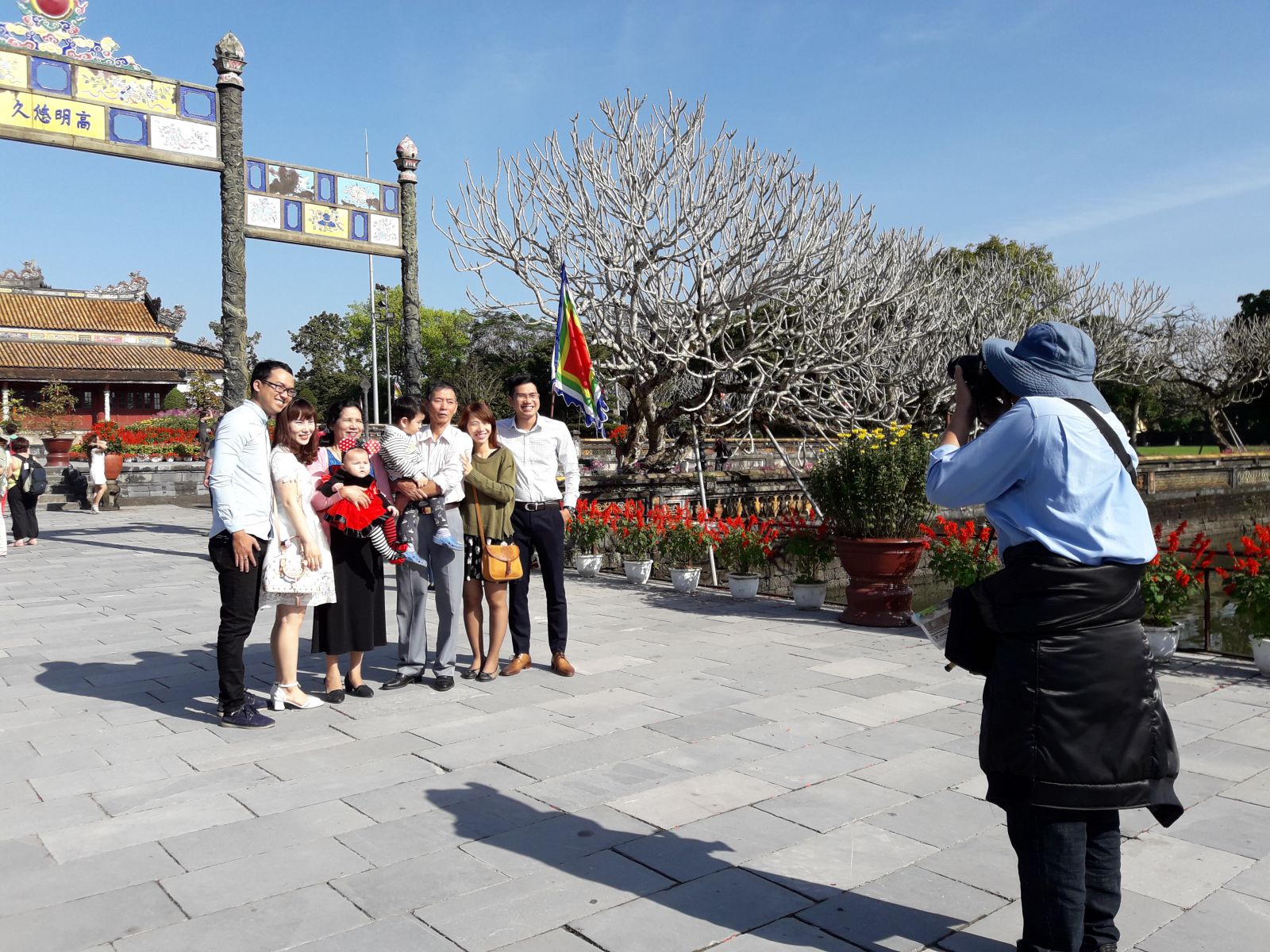 Du khách tham quan và chụp ảnh lưu niệm trong Đại Nội