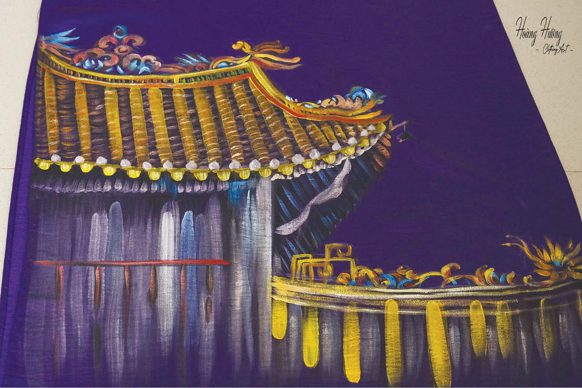 HNN - Yêu tà áo dài và di sản Huế, gần 10 năm nay, Hoàng Thị Hường (73 Lý Nam Đế, TP. Huế) đưa di sản, phong cảnh Huế lên áo dài bằng cách vẽ thủ công nghệ thuật.