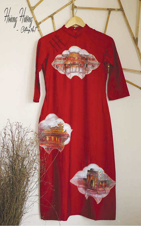 Với chị Hường, mỗi chiếc áo dài là một tác phẩm nghệ thuật. Chị thường trang trí cho áo dài những chủ đề liên quan đến di sản, di tích, thiên nhiên, văn hóa Huế… vừa thỏa mãn yêu cầu của khách vừa tạo cho mình khoảng trời riêng để sáng tạo. Những di tích đặc trưng của Huế, như Ngọ Môn, cổng thành, đền đài, lăng tẩm, những họa tiết cung đình… đều được chị đưa lên áo dài. Nhiều khi chỉ chấm phá hoặc cách điệu nhưng vẫn tạo được điểm nhấn ấn tượng, sống động cho tà áo.