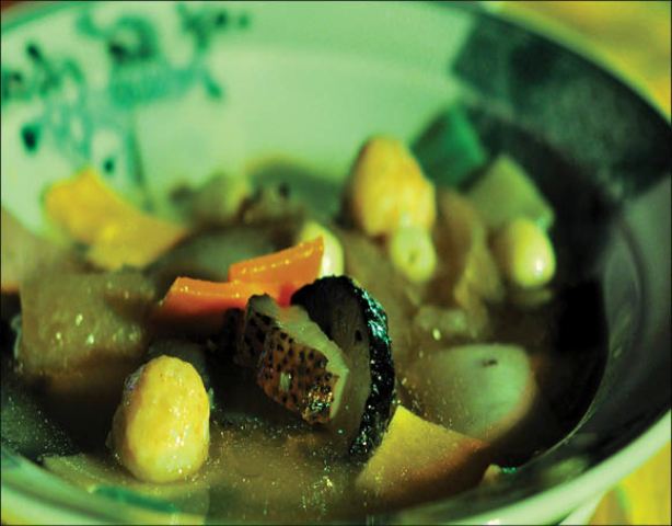 Khi chúng tôi chọn đến thực đơn bình dân này, anh phục vụ vui tính góp chuyện: “Dạ, vua thì... cũng lúc ni lúc khác nên thực đơn của tụi em có nhiều mức giá để quý khách chọn lựa. Nếu muốn thử cảm giác làm vua và hoàng hậu, mời anh chị mặc trang phục cung đình để chụp hình làm kỷ niệm, 50.000 đồng/lượt”. Chúng tôi vừa đồng ý, anh phục vụ đã nhanh nhảu đi lấy trang phục và giúp chúng tôi sửa soạn trong khi chờ món. Vừa giúp chúng tôi chuẩn bị trang phục mới, anh vừa động viên: “Ở đây anh chị cứ yên tâm. Chúng tôi giặt áo quần hằng ngày nên không sợ... bị ngứa”.