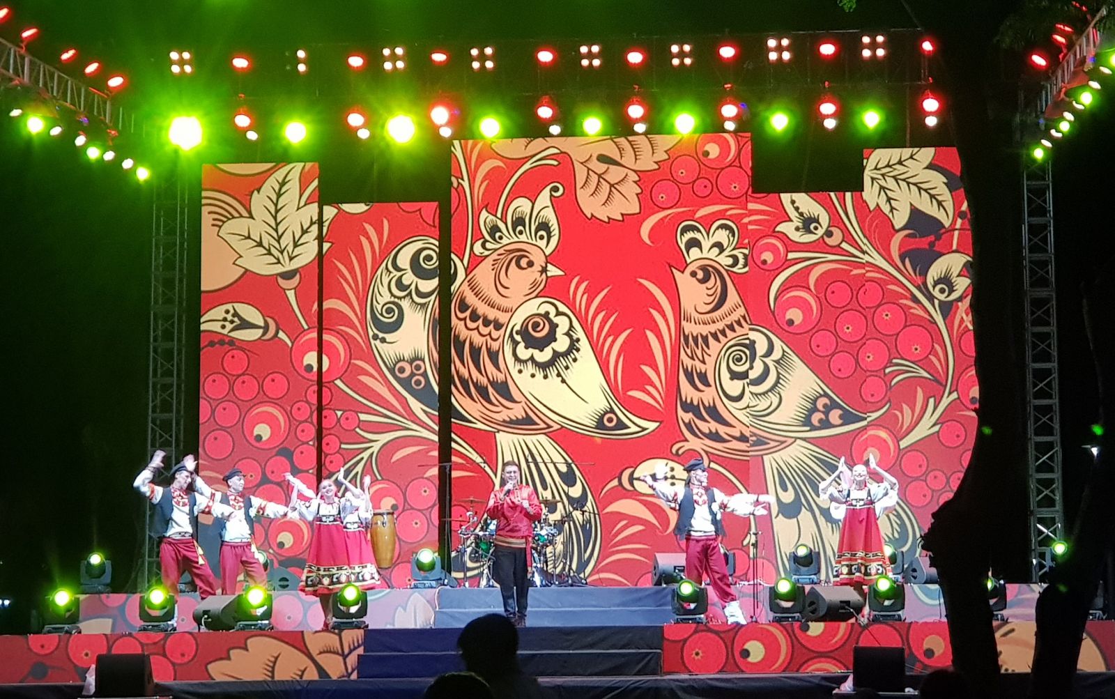 Đoàn múa Belogorie - Nga với nhiều nghệ sĩ tham dự mang đến những vũ điệu tươi vui. Ảnh: L.Tuệ