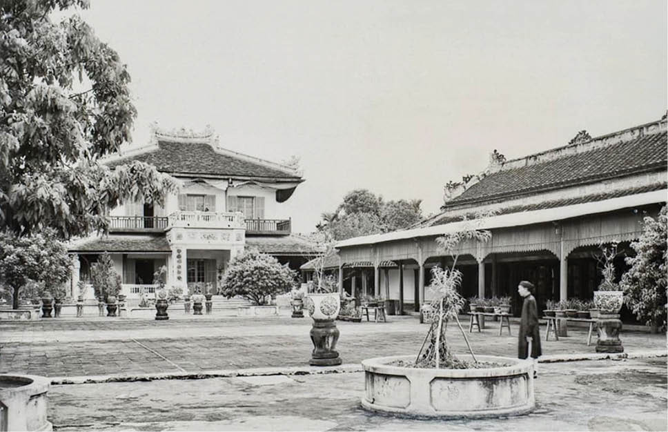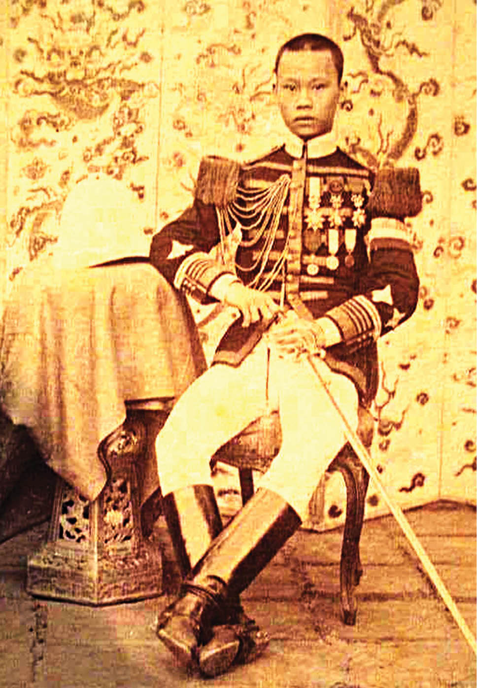 Hình ảnh vua Thành Thái bên cạnh chiếc đôn gốm Cây Mai