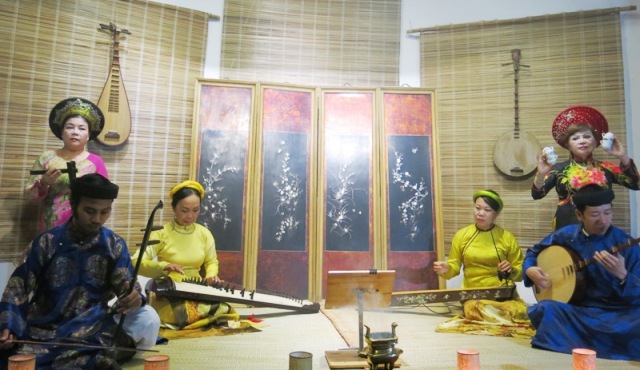 Biểu diễn bản hoà tấu Đăng Đàn Cung – một bài bản ca Huế có xuất xứ từ Nhã nhạc Huế.