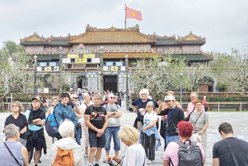 | Du khách nước ngoài tham quan Hoàng cung Huế |