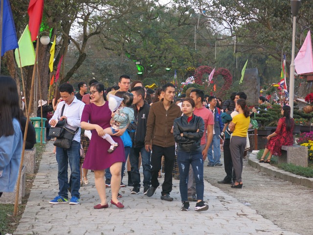 Suốt 3 ngày tết, công viên Lý Tự Trọng níu chân bao người đến đây vui chơi, chụp ảnh lưu niệm. Vào buổi chiều và tối, lượng khách đến công viên vui chơi đông đến mức đường Lê Lợi ở đoạn này tắc nghẽn.