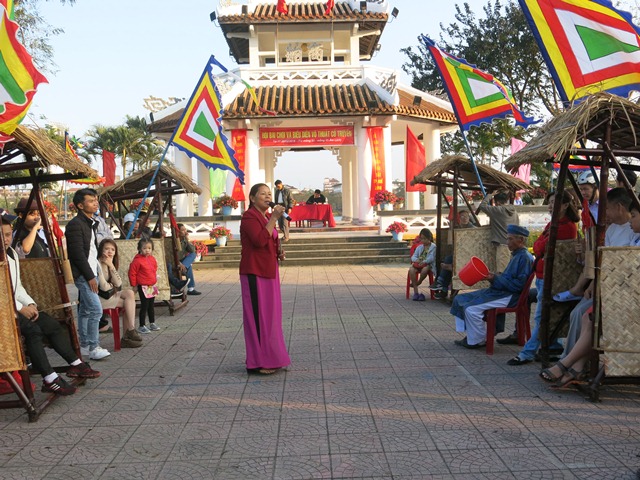 Ông Trần Duy Chựa và bà Phùng Thị Nở quê ở Cầu ngói Thanh Toàn được mời làm “ông hiệu, bà hiệu” dẫn xướng bài chòi. Những câu ca tương ứng với quân bài được ông Chựa, bà Nở hô rao đầy nhịp điệu khiến người chơi và cả người xem cười nắc nẻ: “Hò… ơ… Thiếp xa chàng mất ăn quên ngủ. Chàng xa thiếp giường ngửa gối nghiêng...”. Cứ thế, tiếng hô, tiếng cười hòa lẫn vang cả công viên. Bà Nở kể, mê bài chòi, bà thuộc nằm lòng những câu ca hô rao từ thuở còn là thiếu nữ. Cứ đến dịp tết cổ truyền hay festival, khi bài chòi vào hội, bà lại mang những lời ca ấy góp thêm niềm vui cho mọi người. Ngoài những câu hò trạng, hò thanh và hò đâm bắc được truyền từ thế hệ này sang thế hệ khác, bà Nở còn sáng tác thêm lời mới.