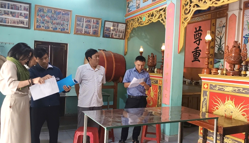 | Kiểm kê thực tế tại đình làng Trạch Thượng (TX. Phong Điền) |