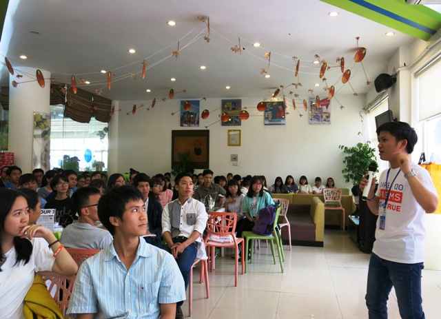 Trong không khí sôi nổi, gần gũi, các bạn trẻ (chủ yếu là học sinh, sinh viên) đã nghe anh Trần Gia Thông – người sáng lập IZI Việt Nam chia sẻ phương pháp ứng dụng tiếng Anh trong các tình huống giao tiếp thực tế và những kiến thức, kỹ năng để trở thành “Đại sứ du lịch Cố đô”.