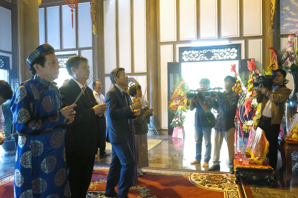 Sau phần nghi lễ và nghi thức đánh trống khai hội, lãnh đạo tỉnh, các ban, ngành, địa phương, cùng người dân và du khách đã dâng hương tưởng niệm, tỏ lòng thành kính, tri ân Đức vua Phật hoàng Trần Nhân Tông và công chúa Huyền Trân, những bậc tiền nhân đã có công lao to lớn trong việc mở mang bờ cõi đất nước.