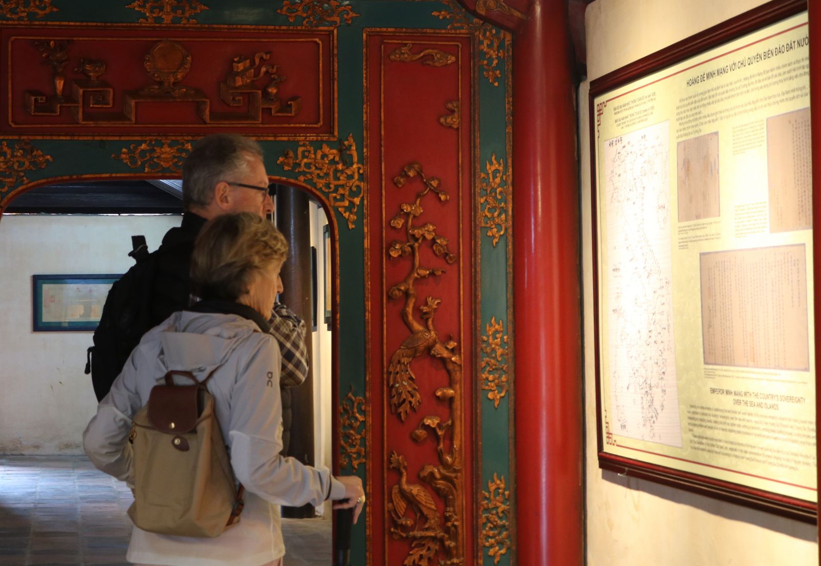 Du khách tham quan không gian trưng bày giới thiệu về hoàng đế Minh Mạng