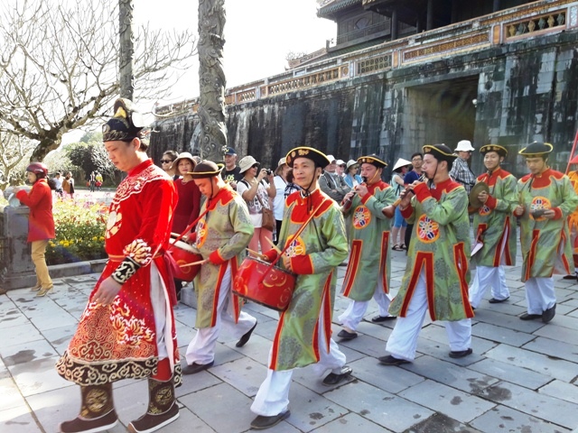 Sôi động hơn hẳn ngày thường, trong những ngày đầu Xuân Đinh Dậu 2017, Trung tâm Bảo tồn Di tích Cố đô Huế còn kết hợp tổ chức nhiều hoạt động biểu diễn văn hóa nghệ thuật phục vụ du khách, như: Lễ Đổi gác, các trò chơi cung đình, trình diễn thư pháp, múa lân - sư - rồng, trình diễn võ thuật cổ truyền... Hoạt động nào cũng tạo được sự hấp dẫn đối với du khách; trong đó, nổi bật là khu vực sau điện Thái Hòa - không gian tổ chức các trò chơi cung đình như: đầu hồ, thả thơ, bài vụ, xăm hường. Anh Dương Tiến Hải, du khách “phượt Huế” đến từ Bắc Giang, háo hức: "Mỗi trò phải thử một lần để biết thêm chút về Tết Huế xưa. Tết ở đây có quá nhiều thứ khác với ngoài Bắc, huống chi đây lại là chốn Hoàng cung, chốn của vua quan một thủa".