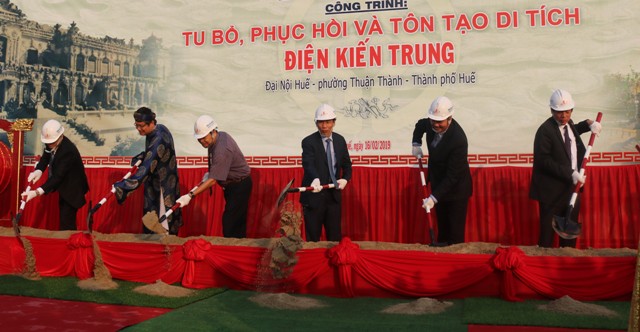 HNN.VN - Sáng 16/2, Trung tâm Bảo tồn Di tích Cố đô Huế và Phân viện Khoa học Công nghệ Xây dựng miền Trung phối hợp tổ chức lễ khởi công công trình tu bổ, phục hồi và tôn tạo di tích điện Kiến Trung.