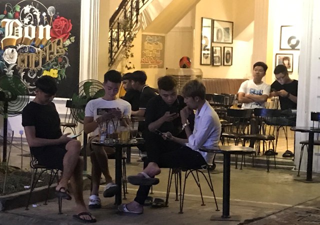Các bạn trẻ trong quán cafe chỉ chăm chú vào điện thoại ít khi thấy nói chuyện với nhau. Ảnh: MQ