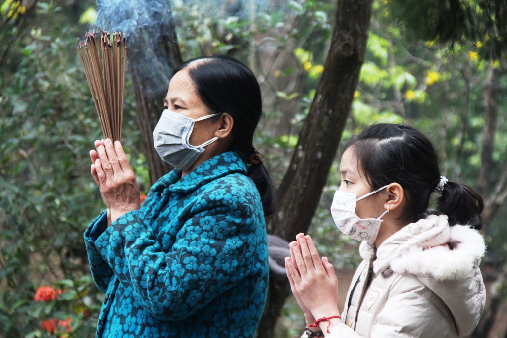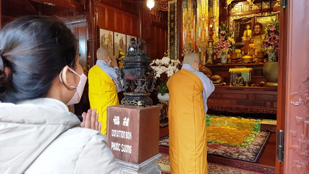 Tại một số chùa trên địa bàn TP. Huế như Từ Đàm, Thuyền Tôn, Từ Hiếu… từ sáng sớm có rất ít người, càng về trưa, dòng người có vẻ đông hơn, từ người già, bạn trẻ cho đến trẻ em. Ai cũng khẩu trang kín mít, trừ lúc chụp ảnh cùng với người thân. Ngoài lễ chùa, mọi người nguyện cầu năm mới an lạc, sức khoẻ, may mắn, dịch bệnh sớm tiêu tan.