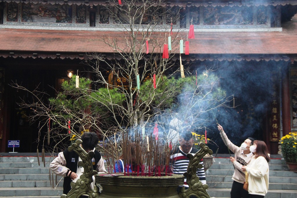 Người dân thắp hương, cầu nguyện mọi điều may mắn khi đi lễ chùa