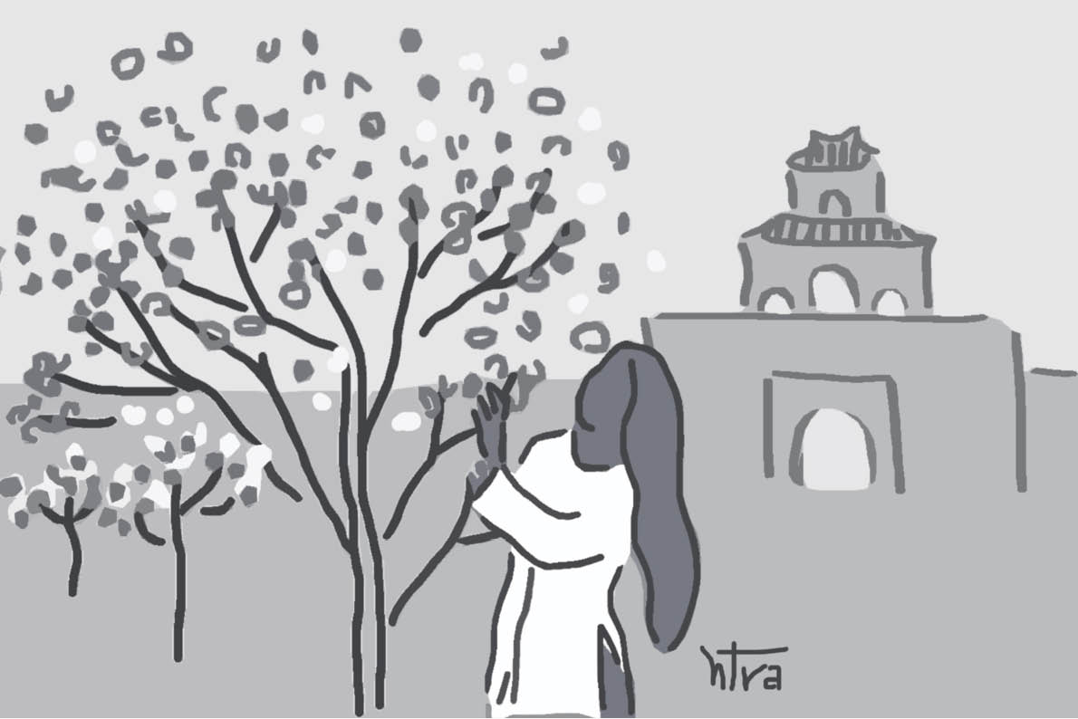 Bước qua cửa Quảng Đức, bên trong Thành Nội, vườn hoa mai nơi này cũng đang tưng bừng khoe sắc trước Đại Nội. Từng cơn gió vượt qua Hộ Thành Hào mang theo tiếng vi vút của đất trời, thổi tung những cánh hoa còn nán lại trên cây. Trong bóng dáng của những người rong chơi giữa ngày có nắng bên những cội hoa vàng, tôi thấy người phụ nữ ngồi dưới gốc mai đang trút những bông hoa cuối cùng theo gió. Bà không thảnh thơi ngắm hoa mà tỉ mẩn hái từng nhúm rau chen mình dưới cỏ. Ngọn rau má tròn tròn, ngọn rau trai dèn dẹt, ngọn cỏ hôi thơm thơm. Mớ rau ấy sẽ theo bà ra buổi chợ sớm để bữa cơm nghèo đủ đầy, ấm áp. Chẳng biết người mua rau hôm ấy, có nghe được hương hoa mai ngát thơm ướp trong từng kẻ lá non xanh, và trong tô canh tập tàng có đượm hơn vị ngọt thanh lành.