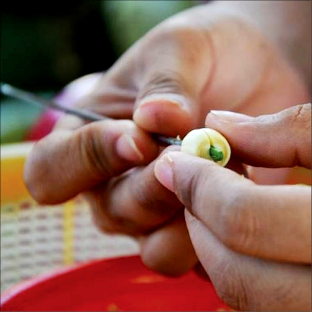 Muốn nấu chè hạt sen trước hết phải xoi tim sen Ảnh: VĐN