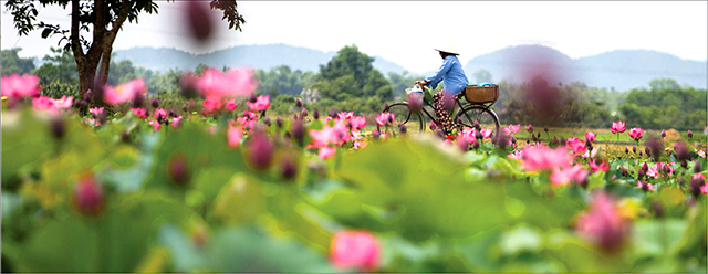 Đi giữa mùa sen. Ảnh: Doãn Quang