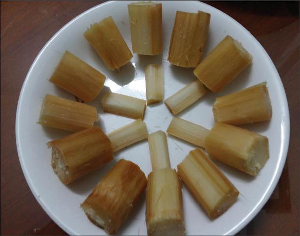 Mía "tiến vua" có lòng tím pha nâu nhạt, ngọt thanh
