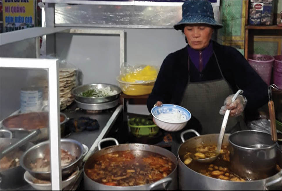 Hương vị các món bánh Huế mà tôi thưởng thức ở quán chị Liễu không khác với nhiều quán ở Huế là mấy. Giá cũng rất bình dân, 15.000 đồng/đĩa. Khác chăng là tôm làm nhân bánh được đưa từ Ninh Thuận lên nên vị không thơm ngon bằng tôm ở vùng đầm phá và biển ở quê nhà. Nhưng không hiểu sao tôi lại thấy ngon. Nhìn chị tất bật bán bánh cho khách liên tục vào ra, chúng tôi khẽ chào tạm biệt chị nhưng không quên hỏi nhỏ về thu nhập. Chẳng giấu giếm gì, chị cho biết: “Một ngày tất bật rứa chớ cũng kiếm được 500 đến 700 nghìn đồng”. Cạnh quán chị Liễu là quán bèo, nậm, lọc của chị Lê Thị Nga (quê xã Quảng Phú, Quảng Điền). 25 năm theo nghề không giàu có, nhưng chị cho hay cuộc sống của gia đình rất ổn định.
