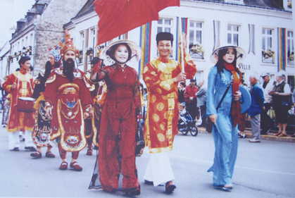 Cố NSƯT La Cẩm Vân (hàng đầu bên trái) và Đoàn Nghệ thuật cung đình Huế tại Pháp năm 2007. Ảnh: Tư liệu