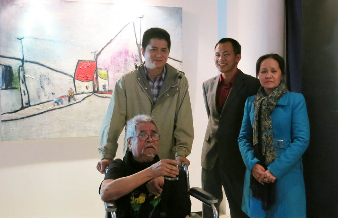 Lặng lẽ đến phòng tranh của con trai trên chiếc xe lăn, họa sĩ Hoàng Đăng Nhuận tâm sự: “Tôi rất hạnh phúc khi thấy con trai dành tặng cho mình món quà ý nghĩa này”.