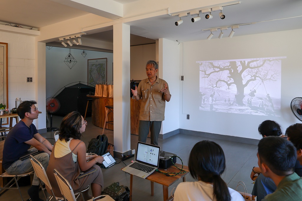 Tại buổi trao đổi, nhiếp ảnh gia người Pháp gốc Việt - Lâm Đức Hiền giới thiệu các hình thức tiếp cận đa dạng về ảnh chân dung tư liệu, cũng như trực tiếp hướng dẫn học viên trong suốt quá trình thực hiện và biên tập bộ ảnh.