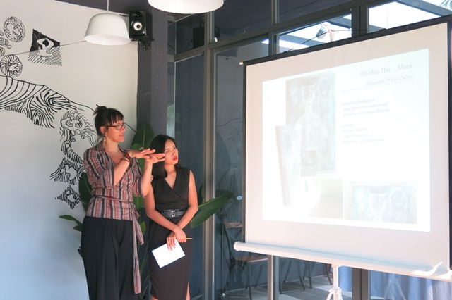 Chuyên gia cũng nêu những ví dụ cụ thể về các tác phẩm của họa sĩ Bửu Chỉ và Lê Phổ mà bà từng phục chế, bảo quản, đồng thời đưa ra lời khuyên với nghệ sĩ Huế về cách bảo quản tác phẩm tại nhà.