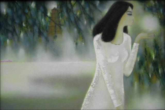 Tôi đã được xem tranh họa sĩ Mai Châu treo trong nhà của những người bạn và cả những lần họa sĩ triển lãm. Điều gây ấn tượng cho tôi chính là sự lung linh của màu sắc, trong không gian nhỏ bé đó như dậy lên những cung bậc dẫn đưa người xem trở về với hoài niệm, những hoài niệm đẹp và mênh mang, mơ hồ giữa đất trời Cố đô.