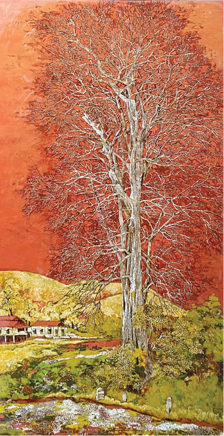 Có rất nhiều tranh trên các bức tường trong nhà họa sĩ Lê Phan Quốc với những gam trầm sâu lắng, dịu dàng mà sang trọng. Cảm giác thật khó gọi tên, nhưng hẳn là tranh sơn mài của Quốc đã chạm đến thật sâu trong tâm hồn và gợi cho người xem nhớ về những ngày xưa cũ đầy hoài niệm…