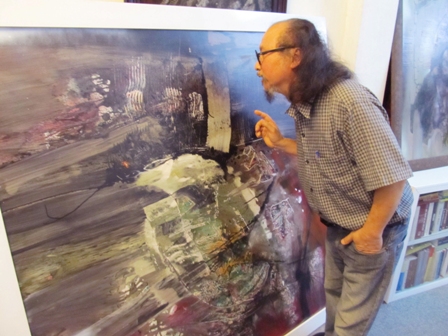 Hoạ sỹ Đặng Mậu Tựu xem lại một tác phẩm trước lúc "trình làng"