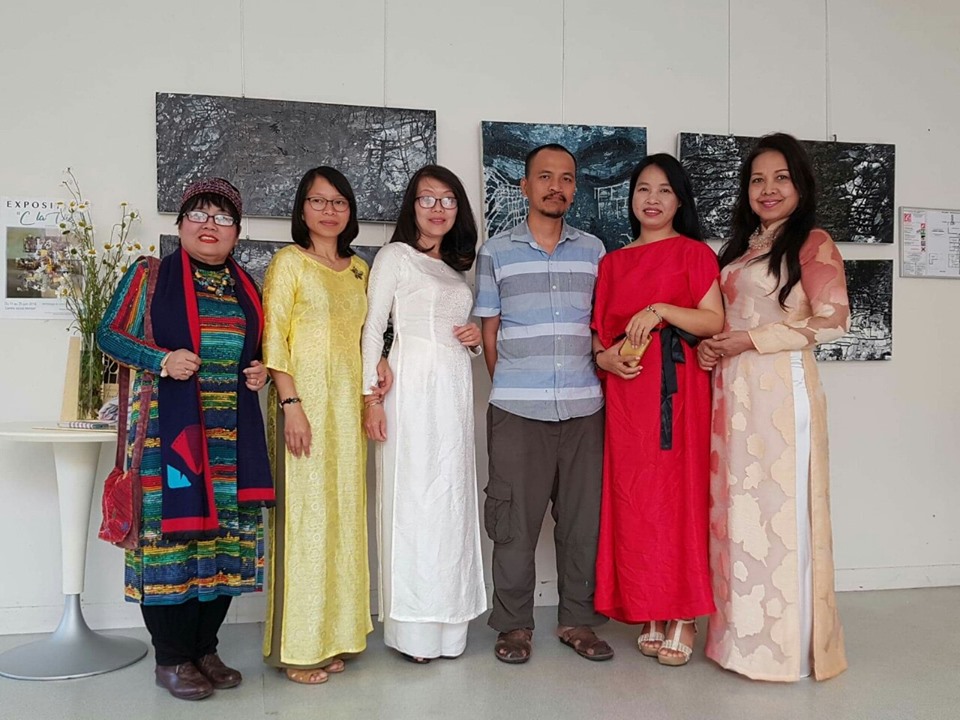 Ở Pháp và Thụy Sĩ, 5 họa sĩ trên cùng một họa sĩ người Pháp gốc Việt là Võ Thị Ngọc Tiền giới thiệu đến bạn bè quốc tế những hình ảnh đặc trưng về đất nước, con người, những âm hưởng cuộc sống của dân tộc Việt Nam. Mỗi người một phong cách, chất liệu: màu nước, tranh dán giấy, đồ họa bút sắt, acrylic và sơn dầu đã diễn tả nhiều khía cạnh của cuộc sống bằng những bút pháp, góc nhìn khác nhau, tạo nên sự đa dạng và phong phú cho phòng tranh.