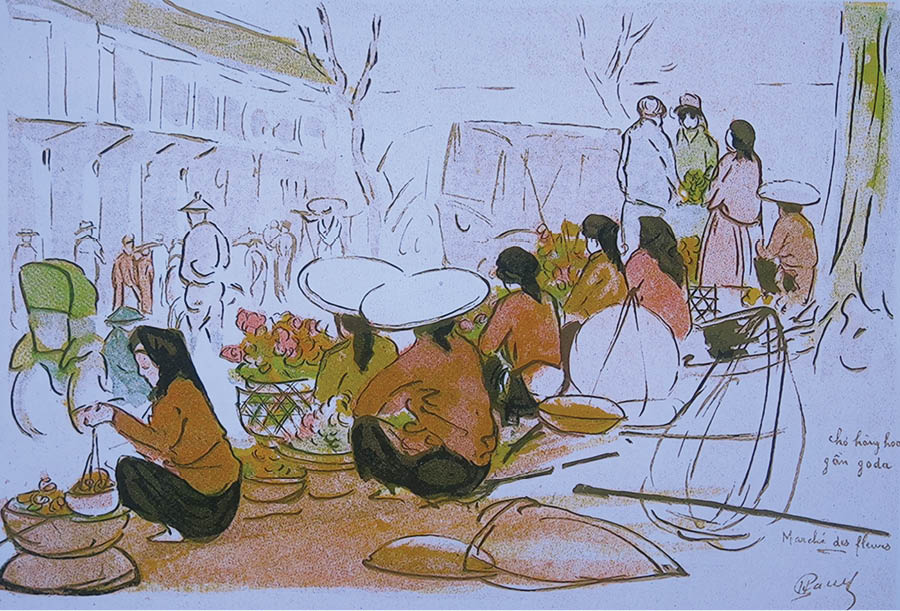 Độc đáo nhất là tập hợp các phác thảo, tranh vẽ và màu nước được thực hiện bởi 15 sinh viên Trường Mỹ thuật Đông Dương, trong đó có những người đã trở thành danh họa, như Lê Phổ, Tô Ngọc Vân và thầy giáo của họ - Ferdinand de Fénis. Được vẽ trong khoảng từ năm 1925 đến 1929, những gánh hàng rong khắp đường phố Hà Nội như sống một cuộc đời khác khi hiện diện trong những bức thảo đầu đời của các danh họa bậc thầy. Bộ sưu tập những bức tranh này từng được giới thiệu ở Pháp từ năm 2018, qua cuốn sách của Viện Viễn Đông Bác Cổ Paris.