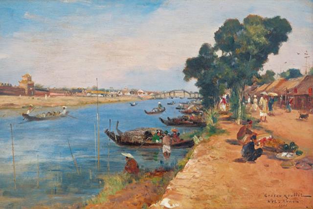 Một bức tranh Gaston Roullet vẽ sông Đông Ba khác so với bức “Sông Đông Ba ở Kinh thành Huế”. Cầu gỗ Đông Ba và cửa Đông Ba có lùi xa hơn, từ đó nhìn thấy những mui đò và cảnh sinh hoạt của cư dân Kinh thành Huế trên sông ngày xưa.