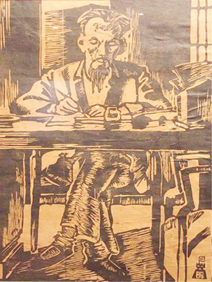 Bức tranh khắc gỗ Bác Hồ ở Bắc Bộ Phủ của họa sĩ Tô Ngọc Vân. Ảnh: TL