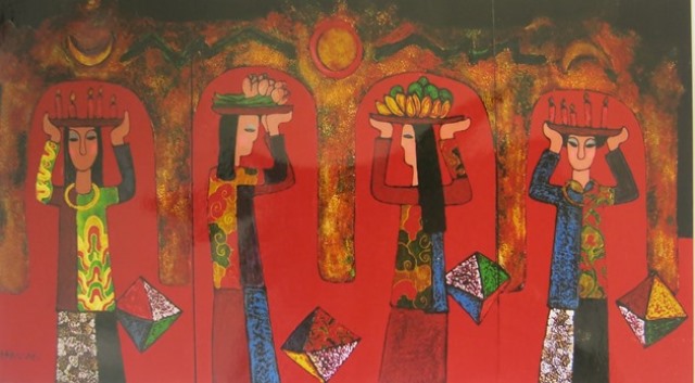 "Tháng giêng trẩy hội" của họa sĩ Hà Văn Chước - tác phẩm vừa được Bảo tàng Mỹ thuật Huế sưu tập